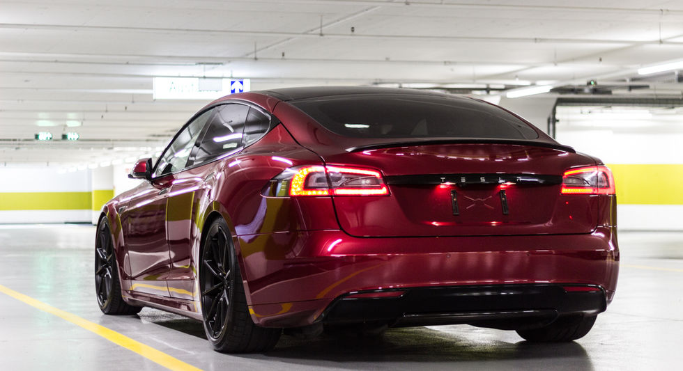 Komplettes Black-Out-Design: Alle Chromteile wurden professionell schwarz foliert – wie bei den neuesten Model S Generationen